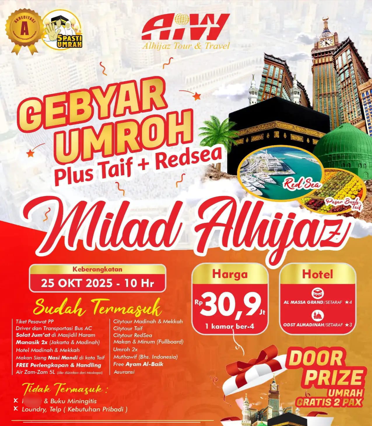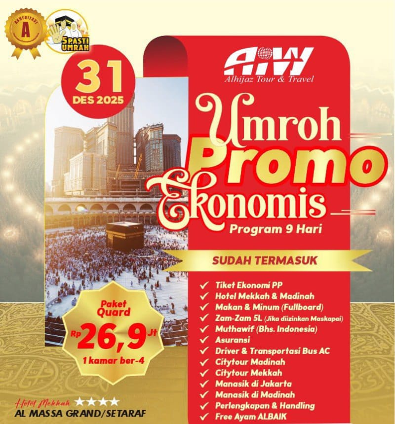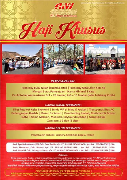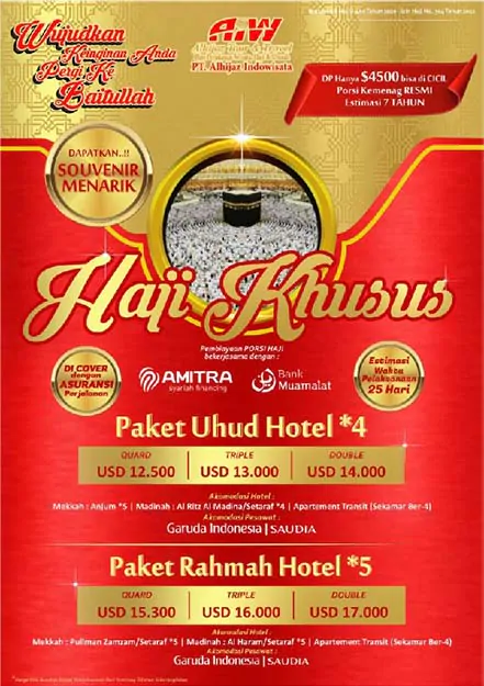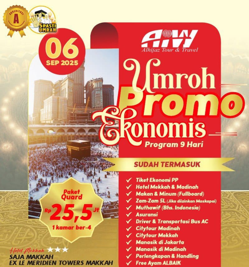 Resmi Berizin Umroh No.U.490 Tahun 2020 dan Izin haji No.304 Tahun 2022.